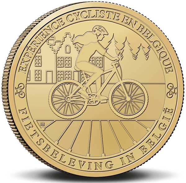 Монету можно приобрести в блистере, на котором красочно изображены элементы велосипеда и поездки на нем в различных условиях. В частности, на блистере изображен знаменитый велосипедный - «водный» - 212-метровый мост («Cycling Through Water») в городе Генк провинции Лимбург, проложенный ниже уровня воды в местном озере. Блистеры изготовлены в двух видах – с надписями на французском и голландском языках. Каждый в количестве 11 250 штук. Еще 7,5 тыс. монет будут распространены в годовых наборах бельгийских евро. Блистеры можно приобрести в