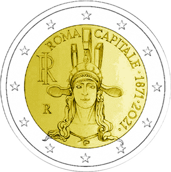 После референдума 2 октября 1870 года Рим был включен в состав Италии, а 26 января 1871 года Рим был провозглашен столицей Итальянского королевства, что знаменовало завершение создания итальянского национального государства. Монеты в качестве BU и proof можно будет приобрести в