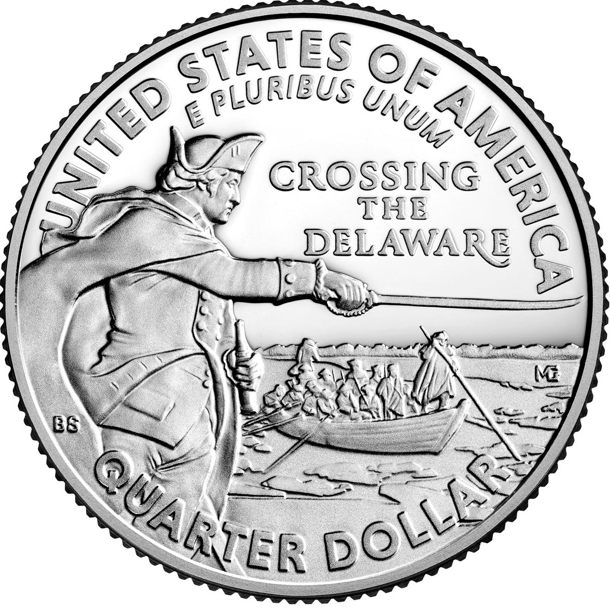 Монетный двор США 5 апреля 2021 года выпустит в обращение новую памятную монету номиналом 25 центов (квотер) в честь важного исторического события в войне за независимость США – пересечение Джорджем Вашингтоном реки Делавэр.